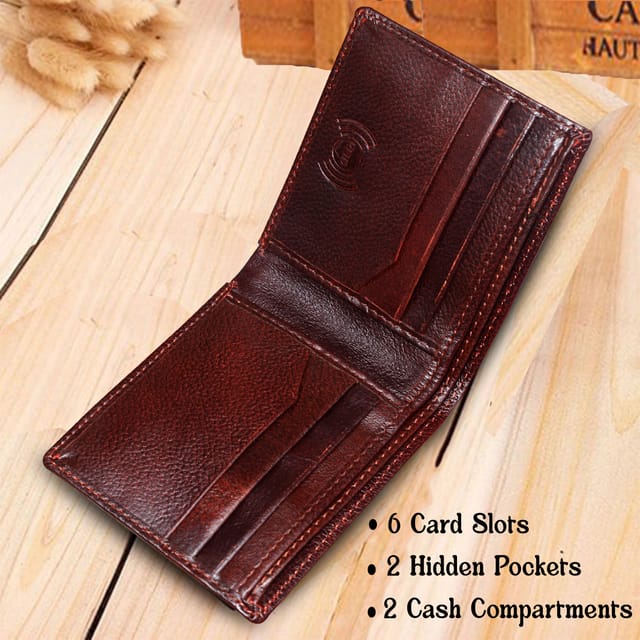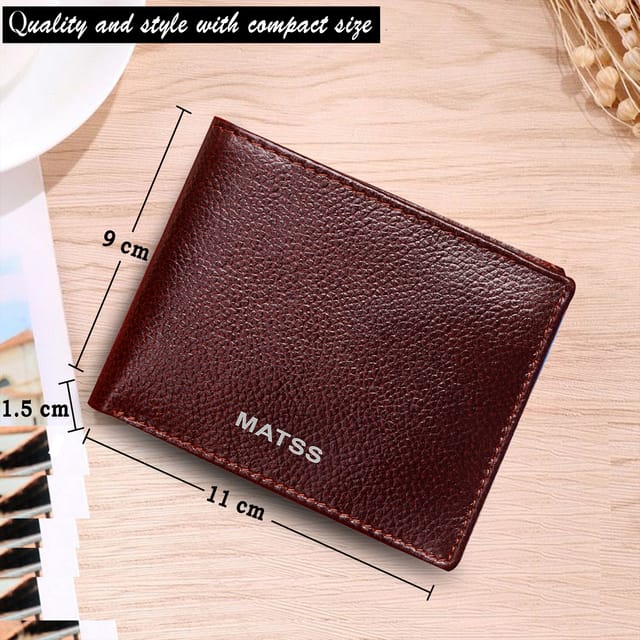 MATSS offers a simple yet elegant everyday men's wallet designed to be both stylish and functional, ensuring it accommodates all essential belongings and endures over time. Crafted meticulously from high-quality genuine leather, this bi-fold wallet boasts a vintage appeal and a soft, luxurious texture. The premium lining and robust stitching enhance its durability, promising longevity.Functionality is key with up to 6 card slots, 2 hidden pockets, and 2 cash slots, all fitting neatly into either front or back pockets. The inclusion of advanced RFID Blocking Technology in the wallet's lining ensures protection against unauthorized scans, safeguarding credit card and identification information.Adding to its appeal, the wallet features MATSS's iconic metallic logo on the front, symbolizing luxury, durability, and professionalism. Suitable for men of all ages and suitable for both business and leisure settings, this wallet exudes charm for any occasion. Furthermore, its attractive gift box packaging makes it an excellent choice for thoughtful gifting.